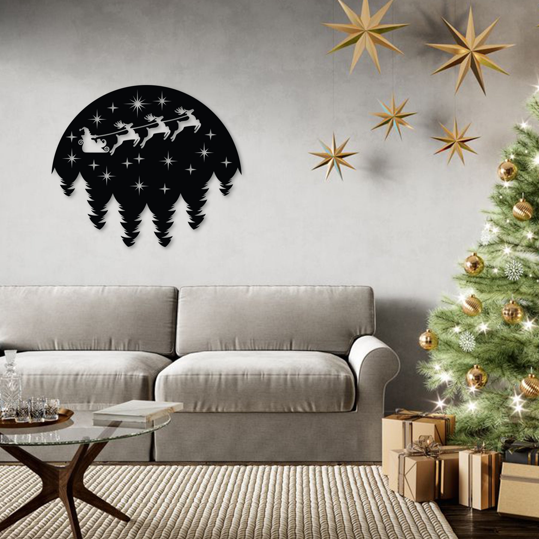 Christmas Wreath Santa Sleigh Metal Wall Decor -